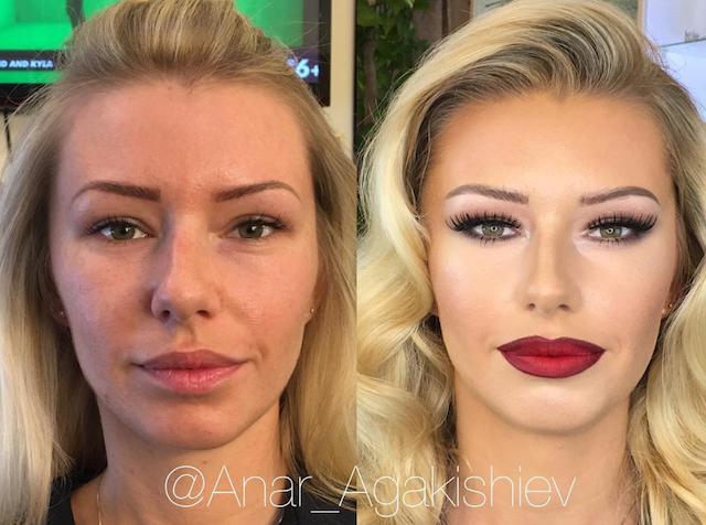 Machiajul, mai ales cel profesionist, aplicat de persoane de make-up artisti talentati, poate schimba radical orice persoana. Imperfectiunile dispar ca prin minune, iar femeile, caci ele beneficiaza cel mai mult de sedinte de machiaj, nu se mai recunosc in oglinda. Nu ne credeti? Priviti transformarile de mai jos, realizate de make-up artistul Anar Agakishiev din Georgia (Instagram: anar_agakishiev)
