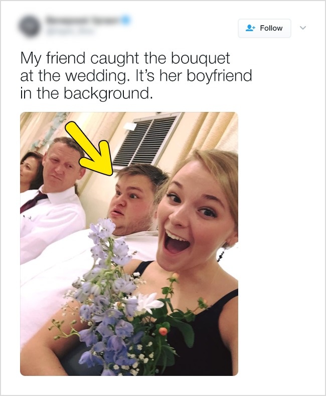 Reactia iubitului fetei care a prins buchetul, la o nunta