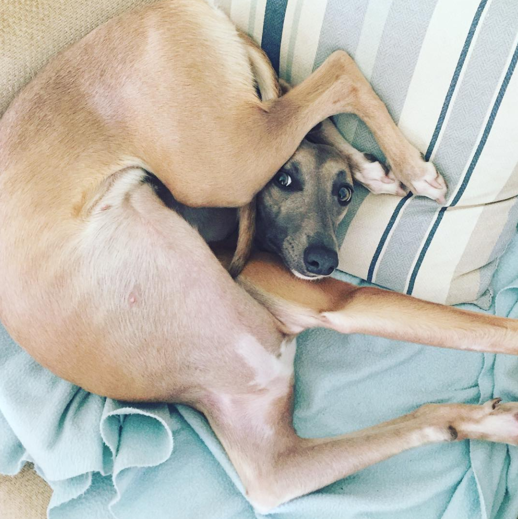 O pozitie in care acest caine, pe nume Iris, pare sa se simta perfect