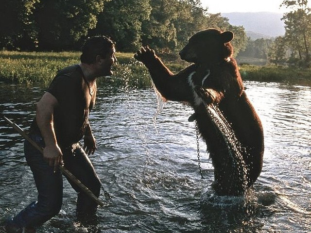 Larry si animalul sau de companie, ursul Coco. Jasper, Arkansas