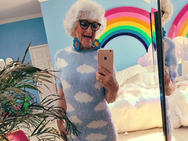 Helen Ruth Van Winkle din Kentucky, SUA, o batranica in varsta de 89 de ani, refuza sa imbatraneasca. Cunoscuta pe retelele sociale sub numele de Baddie Winkle, ea a reusit sa stranga 3,2 milioane de urmaritori doar pe Instagram. A devenit senzatia internetului la varsta de 85 de ani si, de atunci, isi surprinde prietenii virtuali cu haine excentrice si aparitii uimitoare. Puteti vedea mai multe imagini cu ea pe pagina sa de Instagram, baddiewinkle.
