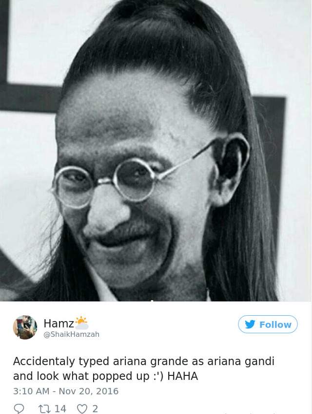 A vrut sa caute pe google imagini cu Ariana Grande, dar a tastat, din greseala, Ariana Gandi. Rezultatul: o combinate intre Gandhi si artista