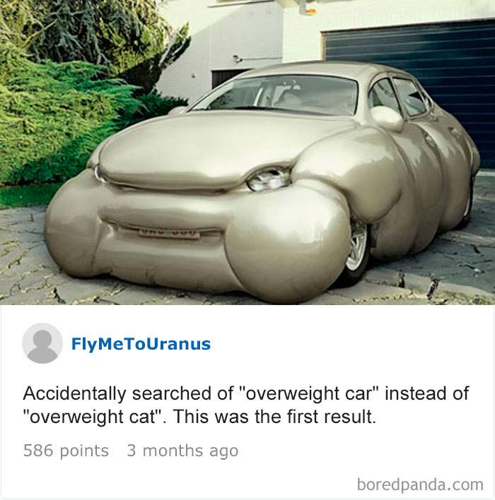 A tastat, din greseala, Overweight car (masina supraponderala) in loc ca overweight cat (pisica supraponderala)