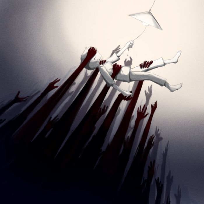 Oricat de optimisti am fi, cu totii avem momente cand simtim ca nimic frumos nu se mai poate intampla in viata noastra. Momente in care simtim ca am ajuns la capatul puterilor, ca nimeni nu ne iubeste, ca suntem abandonati intr-o societate indiferenta in care tot ce vedem sunt zambete false si emotii trucate. Un artist japonez reuseste sa redea perfect, in ilustratiile sale, acele clipe prin care, la un moment dat, trecem cu totii. Pseudonimul sau este Avocado6, iar daca doriti sa vedeti mai multe astfel de imagini realiste puteti intra pe pagina sa de Twitter.