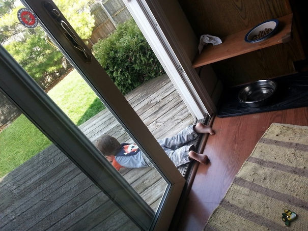 Un copil caruia i s-a spus ca e prea frumos afara ca sa se joace in casa a gasit solutia