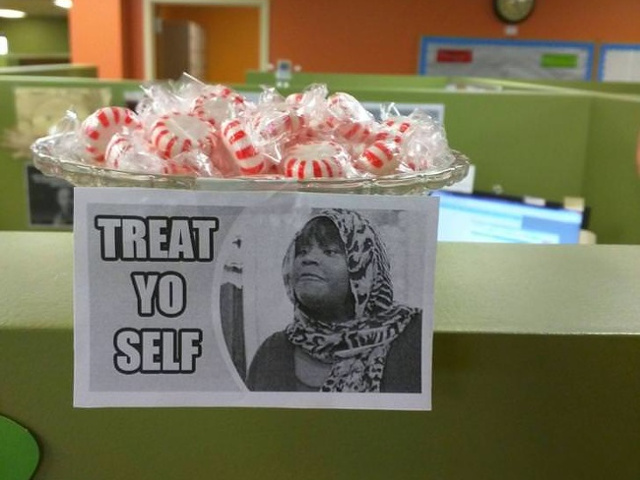 Satula sa fie mereu intrebata "Pot sa iau una?", o femeie a pus acest afis langa bomboane "Serveste-te!"