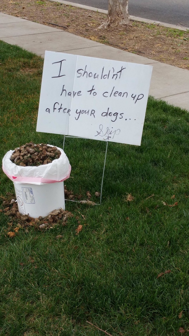 Un barbat care s-a saturat sa curete dupa cainii altora
