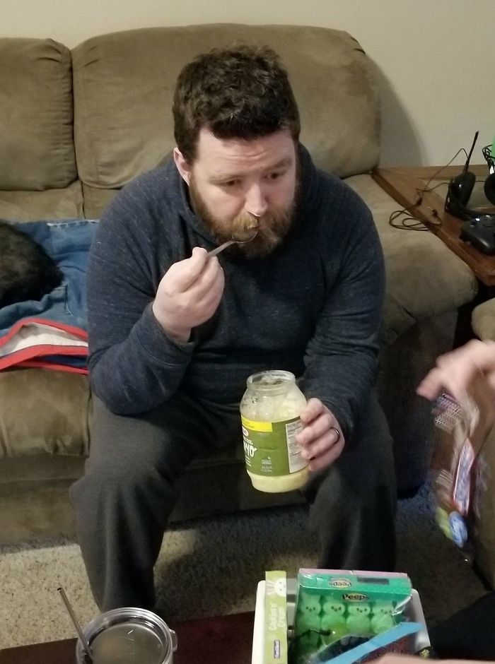 Si-a pus budinca de vanilie in borcanul de maioneza, pentru ca cei mici sa nu ii ceara, si a mancat tot in fata lor