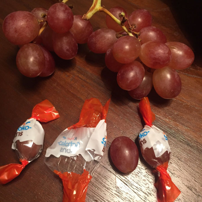Le-a dat copiilor boabe de struguri in ambalaj de bomboane