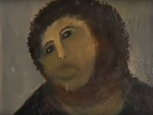 O batrana dintr-un satuc vechi spaniol a stricat o fresca cu Iisus Hristos. Localnicii s-au imbogatit de pe urma greselii ei