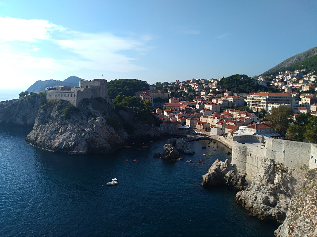 Daca vrei sa te bucuri de o priveliste care sa iti taie rasuflarea, poti face o plimbare pe zidurile citadelei sau poti urca cu telecabina pe dealul Srdj. Din pacate, eu nu am avut timpul necesar pentru a urca pe deal; am putut doar sa-mi las imaginatia sa zburde, pentru a-mi inchipui cum se vede peisajul de la inaltimea de 413 metri. In schimb, nu am ratat plimbarea de pe ziduri. Am reusit sa surprind in cateva fotografii faimoasele acoperisuri rosii, vasele de croaziera din port, pe scurt tot ce are mai frumos de oferit si de capturat Dubrovnikul.