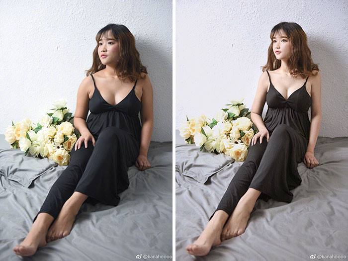 Obsesia chinezoaicelor de a fi frumoase ca niste papusi de portelan este cunoscuta in toata lumea. Pe langa sacrificiile de ordin fizic (modificari corporale si operatii), exista insa si multi tineri, chiar foarte multi, care nu isi permit decat modificari... pe retelele sociale. Asa au aparut specialisti in editarea fotografiilor care, pentru diverse sume de bani sau pentru amuzament, modifica la extrem imaginile pe care "clientii" le posteaza apoi pe retelele sociale. Chiar daca, dupa modificarile imaginilor, tinerii sunt, practic, alte persoane si pot fi recunoscuti doar dupa haine, ei sunt incantati de faptul ca macar asa pot atinge perfectiunea. Iata cateva exemple de astfel de imagini modificate de un user al retelei Weibo (retea sociala asemanatoare cu Facebook-ul) pe nume Kanahoooo: