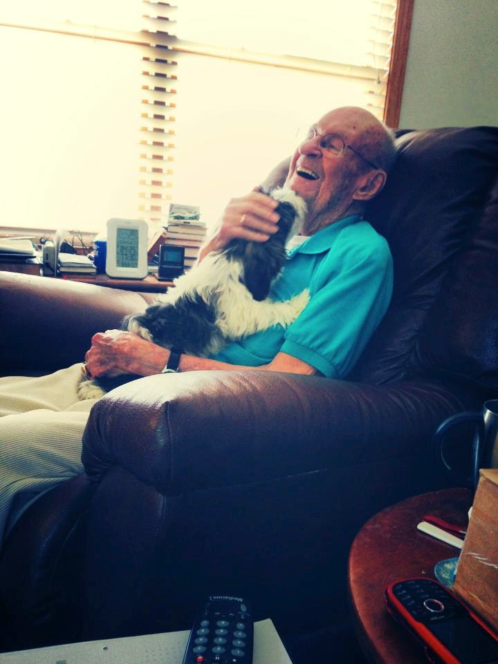 Bunicul, in varsta de 101 ani, si-a luat un nou animal de companie si se bucura din plin de prezenta lui