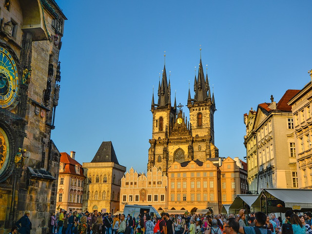 Piata unde pot fi admirate mai multe cladiri construite in diferite stiluri arhitecturale