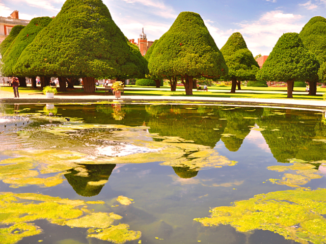 Copaci in fata Palatului Hampton Court, Londra, Marea Britanie