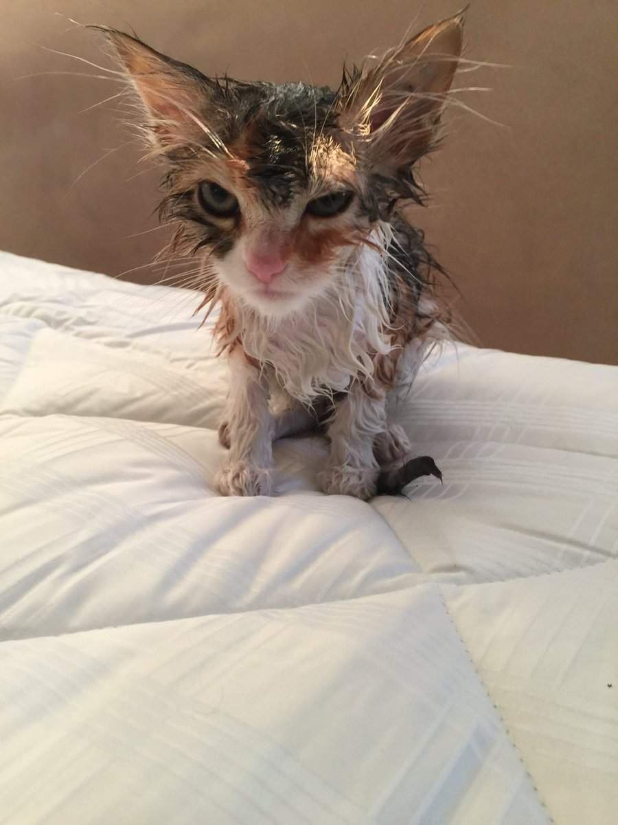 Din primele observatii, nu pare sa ii fi placut prea mult baia