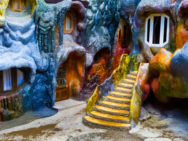 Pe o strada mai putin cunoscuta din Da Lat, capitala provinciei Lam Dong, se ascunde o constructie suprarealista cu arhitectura unica. Imediat dupa ce se trece de intrare, aceasta constructie care a fost incadrata in categoria celor mai ciudate din lume, lumea turistului care ii trece pragul se transforma in viziuni de o realitate suprarealista si deformata. Materialele sunt cunoscute - ciment, armatura si vopsea - dar constructia este un labirint de halucinatii si ciudatenii. Cu alte cuvinte, bine ati venit la Pensiunea Hang Nga, cunoscuta si sub numele de "Crazy House" ("Casa nebuna"). Iata cateva fotografii si informatii interesante despre locul care atrage atat de multi turisti curiosi in fiecare an.