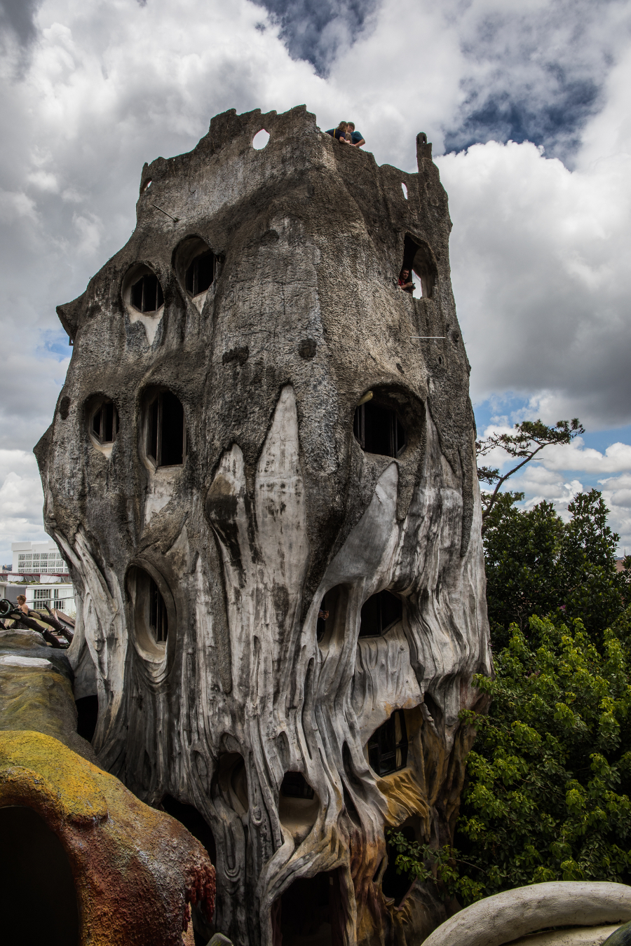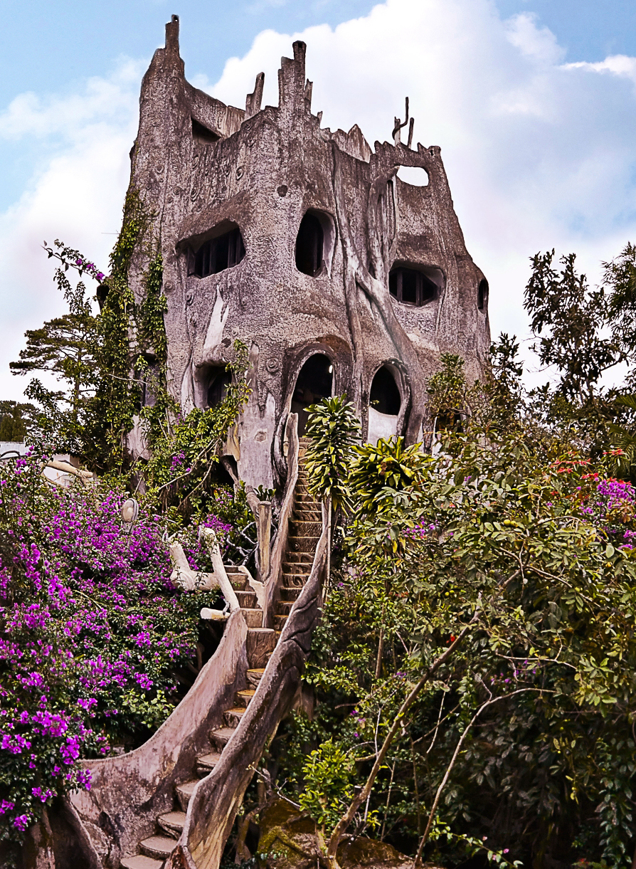 Pe o strada mai putin cunoscuta din Da Lat, capitala provinciei Lam Dong, se ascunde o constructie suprarealista cu arhitectura unica. Imediat dupa ce se trece de intrare, aceasta constructie care a fost incadrata in categoria celor mai ciudate din lume, lumea turistului care ii trece pragul se transforma in viziuni de o realitate suprarealista si deformata. Materialele sunt cunoscute - ciment, armatura si vopsea - dar constructia este un labirint de halucinatii si ciudatenii. Cu alte cuvinte, bine ati venit la Pensiunea Hang Nga, cunoscuta si sub numele de "Crazy House" ("Casa nebuna"). Iata cateva fotografii si informatii interesante despre locul care atrage atat de multi turisti curiosi in fiecare an.