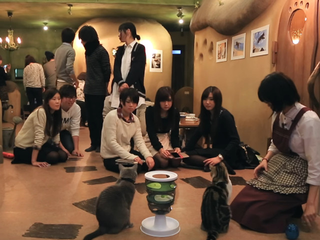 Am lasat cafenelele din Japonia la sfarsit doar pentru a deschide o alta lista de posibilitati si destinatii specifice: Yoga cu pisici, decoruri din filme si pisici, cafenele cu anumite tipuri de pisici si multe alte variatii. Regulile privind animalele de companie in camerele date spre inchiriere sunt printre cele mai stricte, prin urmare nevoia unor localuri in care schimbul de afectiune cu animale este foarte mare. In Japonia exista peste 150 de cafenele orientate catre pisici si admiratorii lor, dintre care cel putin 40 in Tokyo. Una dintre cele care ne-au atras atentia se numeste Temari no Ouchi si isi bucura atat pisicile cat si vizitatorii cu decoruri specifice studiourilor Ghibli. Cei care cauta mult spatiu in tara care a raspandit minimalismul se pot indrepta catre paturile duble din una dintre cele mai spatioase cafenele din Japonia: Mocha Lounge.