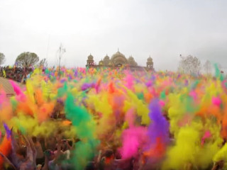 Holi marcheaza sosirea primaverii. Este, de asemenea, cunoscut sub numele de festivalul culorilor, deoarece oamenii arunca cu pulbere colorata unul in altul. Fiecare culoare are un inteles propriu. Rosu reprezinta puritate, verde - vitalitate, albastru - calm si galben - sentimente pioase, noteaza