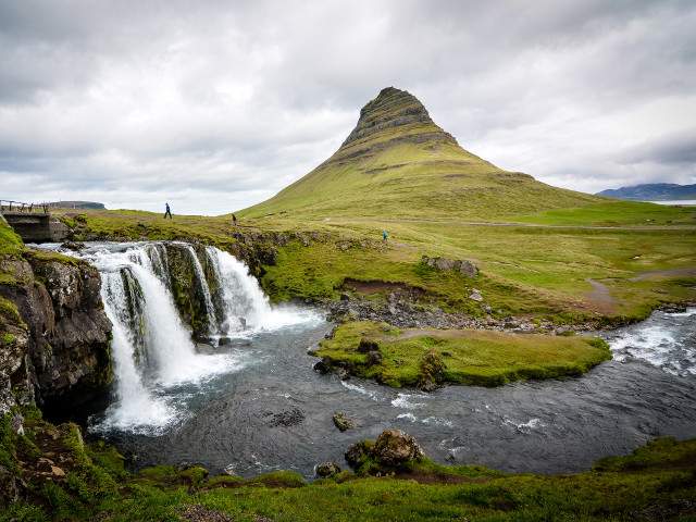 Muntele Kirkjufell, care se traduce prin "muntele biserica", gratie formei simetrice