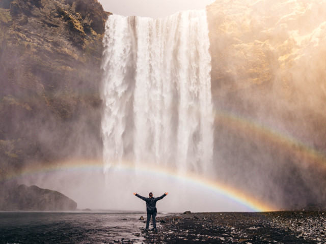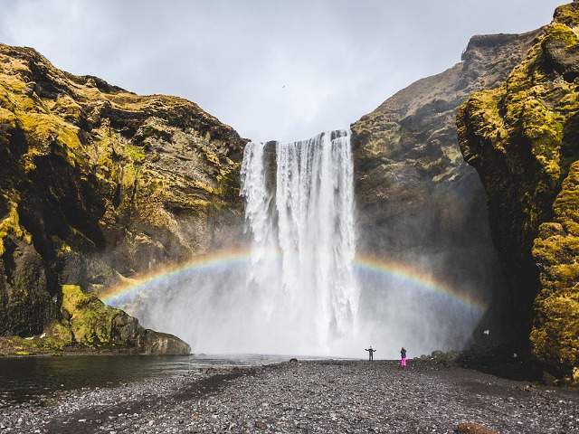 Cascada Skogafoss rivalizeaza la frumusete cu Seljalandsfoss, avand 60 de metri inaltime
