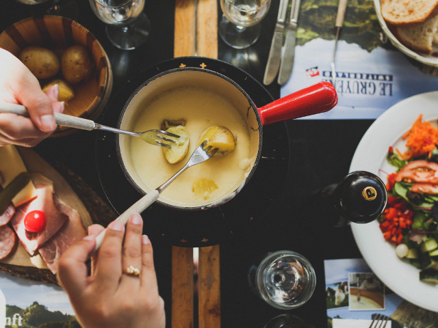 Tarile cu care se invecineaza Elvetia si-au pus puternice amprente asupra bucatariei locale, care, gustoasa si foarte tentanta, a dat lumii gastronomice bucatari-sefi recunoscuti pe plan mondial. Cele mai consumate preparate din bucataria elvetiana se bazeaza pe ingrediente simple, precum cartofi, produse lactate si carne (afumata), dar se consuma din belsug si ciuperci, spanac, conopida, fasole. De asemenea, extrem de importante pentru elvetieni sunt cerealele, acestia fiind producatorii a nenumarate specialitati de paine din cereale integrale, mult mai sanatoase. Printre felurile renumite de mancare elvetiana se numara: Rosti - cartofi dati prin razatoare si gratinati; Fondue - un amestec de minimum trei tipuri de cascavaluri, din care nu lipsesc Emmentaler si Gruyere, topite la foc, intr-un vas inalt, alaturi de vin alb, usturoi, verdeata, care se serveste fierbinte cu bucati de paine.
