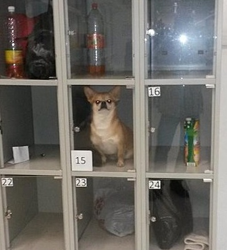 Un caine lasat de stapan in dulapul de la magazin