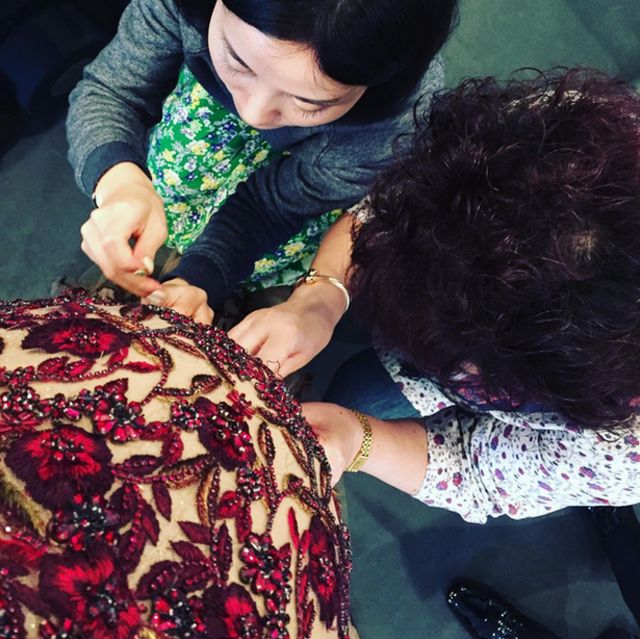 Sotia cantaretului John Legend, Chrissy Teigen, a publicat o fotografie in care le arata fanilor cum se munceste pentru o tinuta perfecta. Chiar dac e insarcinata, Chrissy a fost nevoita sa stea in picioare minute bune pentru ca podoabele rochiei sa fie aplicate manual.