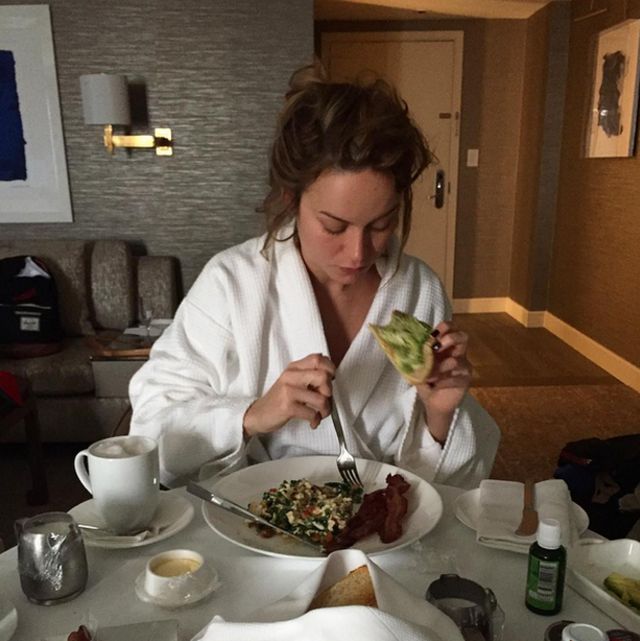 Daca ceva mai devreme o vedeam pe Brie Larson mancand burgeri, in imaginea de mai sus identificam masa ideala de dinaintea galei: avocado si paine prajita. Nu de alta, dar pozele de pe covorul rosu trebuie sa fie perfecte si rochia trebuie sa o incapa.