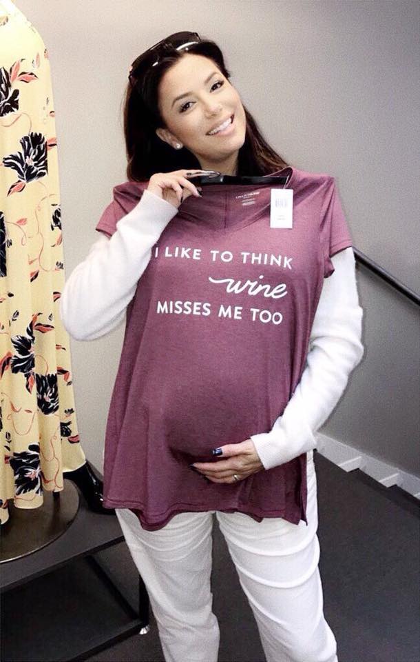 Desigur, consumul de bauturi alcoolice este strict interzis in perioada sarcinii, iar Eva nu se abate de la aceasta regula. Asta nu inseamna ca nu poate glumi, avand in vedere imaginea pe care a postat-o pe Instagram, pe tricou fiind scris textul: "Mi-ar placea sa cred ca si vinului ii este dor de mine".