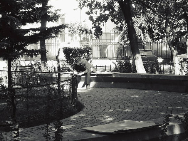 Fotografia este realizata in parculetul de pe strada Tudor Arghezi, iar domnul din imagine, care merge acolo zilnic, este artistul plastic Ion Barladeanu. Tot timpul citeste si zambeste. Este intruchiparea linistii intr-un oras atat de agitat precum Bucurestiul.