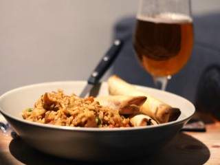 Orez cu cinci ingrediente. Unul este berea