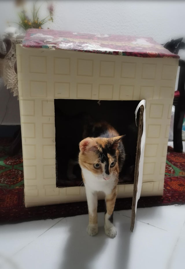 7. "Tatal meu nu si-a dorit un animal de companie, dar astazi a construit o casa pentru pisica noastra gestanta"