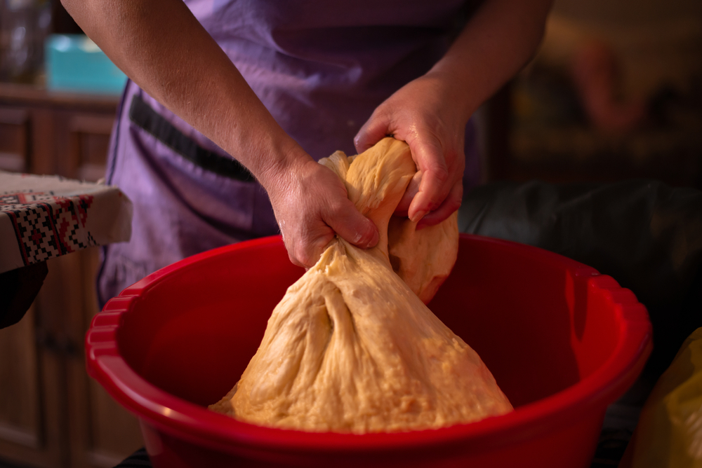 Făina se va cerne într-un bol cât mai încăpător. Ar fi bine ca făina să fie cernută de cel puțin trei ori. După aceasta, se va adăuga sarea. Topește untul în cuptor sau lasă-l lângă focul de la aragaz, astfel cât să fie mai ușor de amestecat. Încălzește laptele, însă foarte puțin, atât cât să nu fie rece. Adaugă zahărul, esența de vanilie și coaja rasă de la lămâie. Pentru o aromă mai intensă, ideal ar fi și niște coajă de portocală. Amestecă totul până când zahărul s-a topit. Pune drojdia într-un bol, iar peste ea adaugă 100 ml de lapte, o lingură de zahăr și două linguri de făină. Amestecă cu mișcări largi, până când drojdia se omogenizează complet cu restul ingredientelor. Maiaua se lasă la cald, până când își dublează cantitatea.