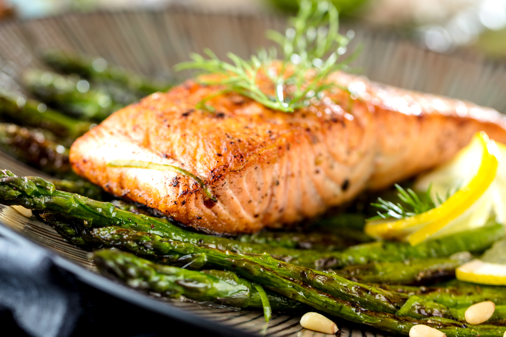 Somonul conține acizi grași omega 3 utili, în timp ce sparanghelul bogat în fibre și proteine vă ajută să eliminați excesul de apă din organism. Pentru a vă masa cât mai delicioasă și cât mai sănătoasă, vă sfătuim să gătiți la aburi sau la cuptor.