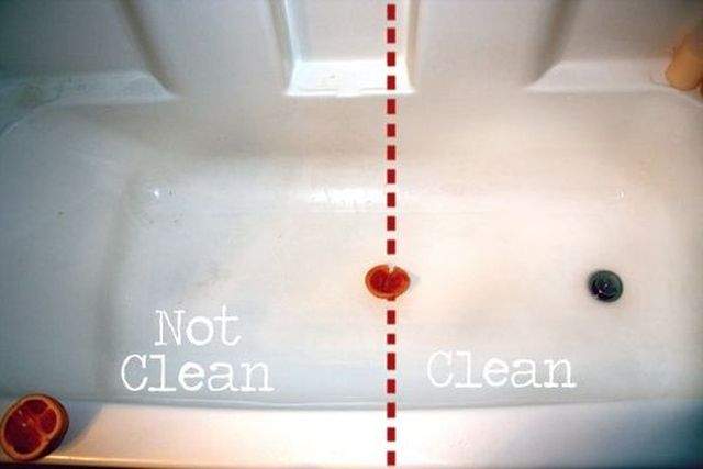 Cada poate fi foarte usor curatata cu ajutorul unui grapefruit. Se taie fructul in doua si se presara sare grunjoasa pe el. Inmoi suprafata cadei cu ajutorul dusului si iei apoi inca o mana de sare pe care o presori peste toata suprafata uda. Curati toata cada cu jumatatea de greapfruit si clatesti din nou.