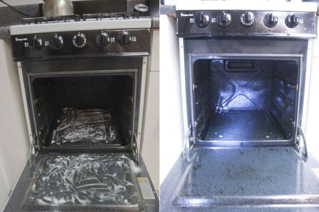 Poate cea mai mare provocare o sa fie curatarea cuptorului. Grasimea arsa poate fi insa indepartata foarte usor cu un amestec cuprins din parti egale de bicarbonat de sodiu si otet. Le amesteci intr-un vas si cu ajutorul unei spatule de plastic aplici solutia. O lasi sa actioneze 10-15 minute, apoi poti incepe sa freci, folosind aceeasi spatula.