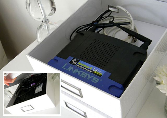 Ascunde router-ul si cablurile inestetice ale acestuia intr-o cutie frumoasa, in ton cu mobilierul.