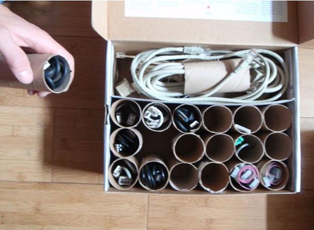 Pastreaza tuburile de la hartia igienica si folosestele pentru a depozita cabluri. Vei evita astfel ca ele sa se incurce.