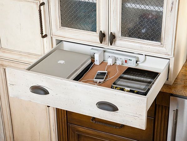 Monteaza priza in interiorul unui sertar. Eviti astfel eventualele accidente ce se pot produce cat timp dispozitivele tale electronice raman la incarcat si te poti asigura ca nimeni nu umbla la ele.