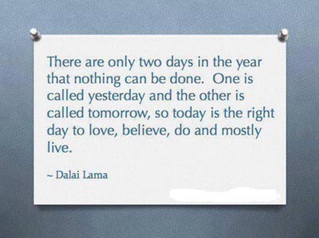 Exista doar doua zile pe an in care nu se poate face nimic: Ieri si maine, asa ca ziua de astazi este potrivita pentru a iubi, a crede si, cel mai important, pentru a trai.