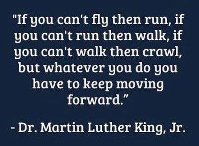 Daca nu poti zbura, alearga. Daca nu poti alerga, atunci mergi. Daca nu poti merge, taraste-te. Orice ai face, trebuie sa mergi necontenit inainte.