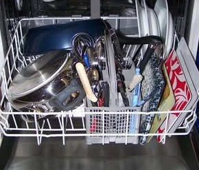 Oricat de paradoxal ar suna si masina de spalat vase trebuie curatata. Asadar adauga o ceasca cu otet amestecata cu apa si bicarbonat si ruleaza un ciclu normal de spalare in gol cu apa fierbinte.