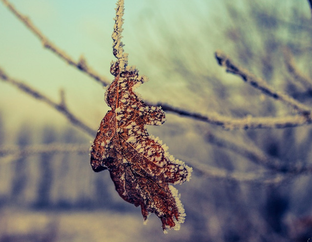 Ultimele frunze ale toamnei, cazute pe covorul alb, de zapada