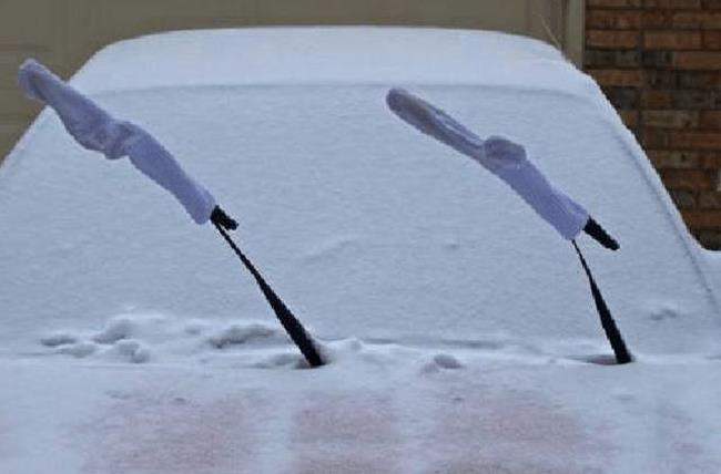 4. Daca vrei sa nu iti mai inghete stergatoarele, pune niste sosete pe ele. Nu uita sa le dai jos cand pleci la drum. Sosetele, nu stergatoarele