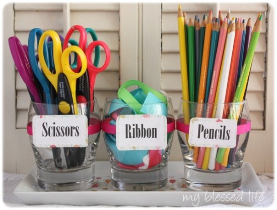 Cu totii avem in casa pahare din seturi mai vechi, incomplete, pe care nu le mai folosim. Le putem utiliza ca si obiecte de depozitare, precum in imaginea atasata.