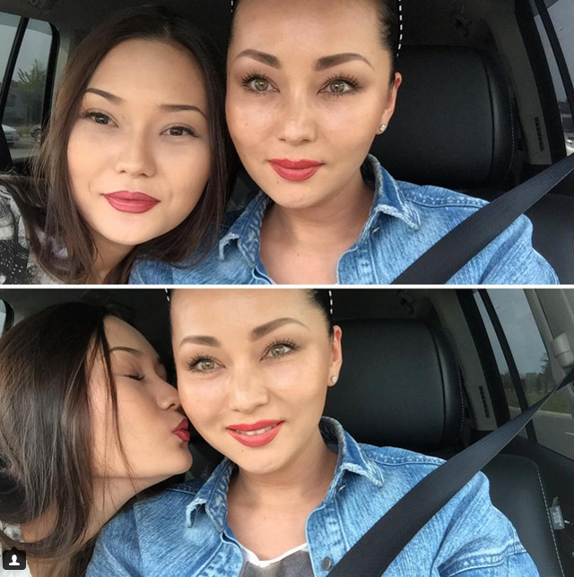 Bayan Yessentayeva (43 de ani, in dreapta) alaturi de fiica ei, Aissaule (20 de ani)