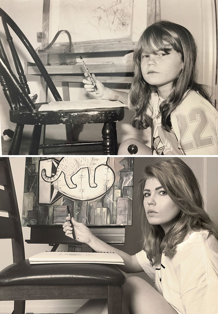Imagini facute la o diferenta de 17 ani. Intre timp, tanara a ajuns artist cu acte in regula