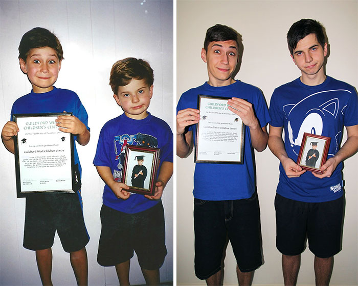 Timpul nu sta in loc, iar imaginile de mai jos demonstreaza cat se poate de clar acest lucru. In cele ce urmeaza, veti vedea 15 imagini in care adulti au incercat sa refaca imagini din copilarie, incercand sa imite cat mami mult detaliile. Daca au reusit sau nu, puteti decide dumneavoastra.